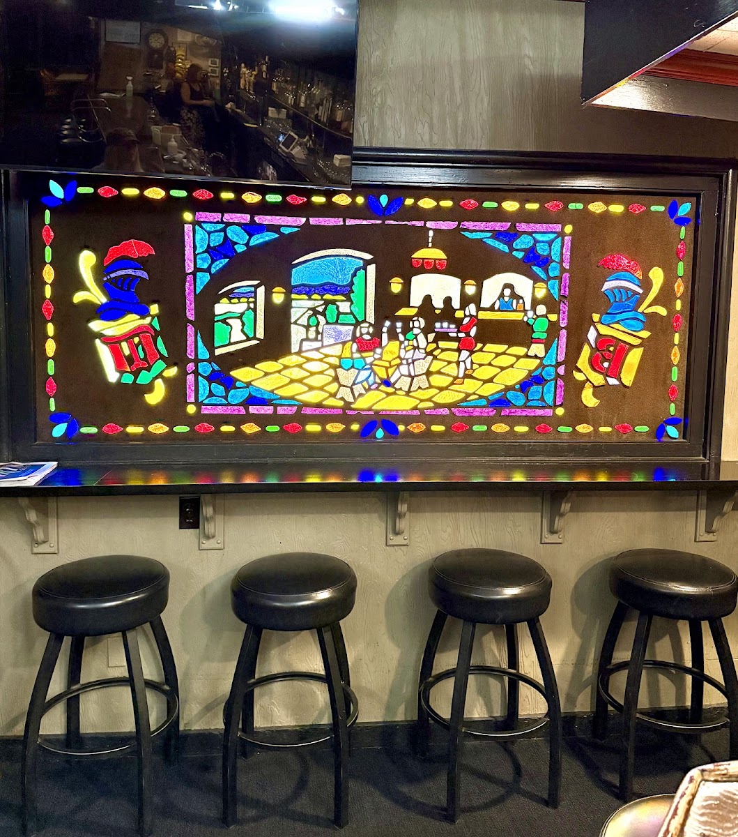 Customers praise the friendly and attentive staff, including standout personalities like Mel, who are sure to make your visit memorable. The stain glass decor adds a unique touch to the bar, creating a cozy yet vibrant setting.